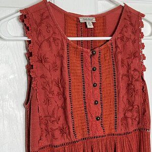 Lucky Brand Babydoll Top sz XS Linen Blend Embroidered Lace Y2K