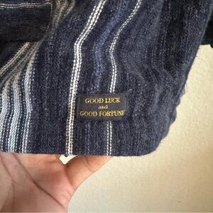 Embrace laid-back vibes with this Lucky Brand Baja Woven Hooded Sweatshirt in a timeless navy and white striped pattern. Featuring a relaxed, sleeveless design and a cozy hood, this size Large sweatshirt is perfect for layering on breezy beach days or cool summer nights. The woven texture and Baja-inspired style add a touch of Bohemian charm, making it a must-have for your Coastal Prep or Western Romance wardrobe.