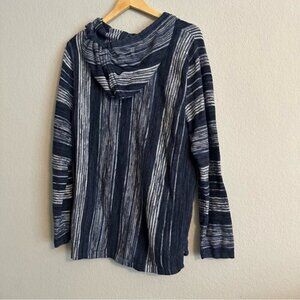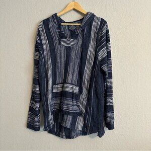 Lucky Brand Baja Woven Hooded Sweatshirt Sz Large Navy and White Long Sleeveless