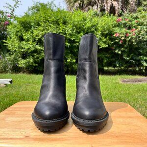 Lucky Brand Bajax Black Leather Platform Lug Sole Booties Size 11