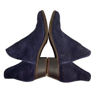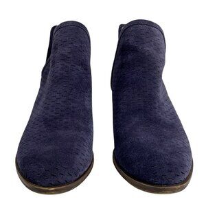Lucky Brand Baley Ankle Bootie Navy Suede Perforated Western Womens Size 7M EUC