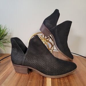 Lucky Brand Baley Perforated Slip On Ankle Boots Booties Black leather Size 7