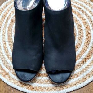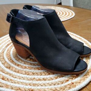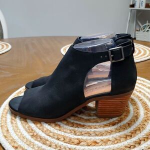 Lucky Brand Bannah Black Genuine Leather Peep Toe Cut Out Heeled Bootie, Size7.5, great condition, bit of rubbing on inside of strap