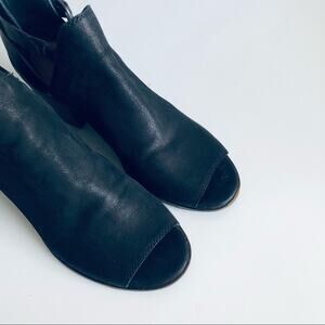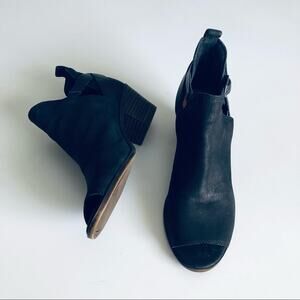 Lucky Brand 'Banu' Women's 6.5 Leather Open Toe Buckle Bootie Black Nubuck