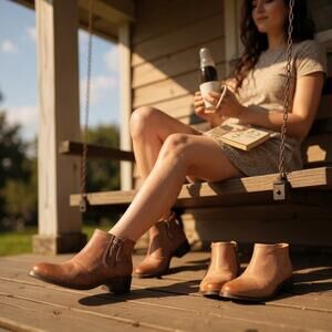 The Lucky Brand Bardon 2 Brown Leather Zip Booties in women's size 8.5M are stylish and versatile footwear perfect for a variety of occasions. Featuring an almond toe shape, zip closure, and low-block heel, these ankle booties are made from breathable leather with a comfortable cushioned insole. The brown color and Southwestern bohemian theme add a trendy touch to the overall design. Whether you're traveling or dressing casually, these Lucky Brand booties are sure to make a statement. Please review the photos.