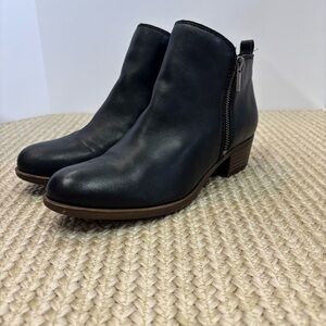 Lucky Brand ‘Basal’ Black Leather Booties Side Zip Womens Sz 7.5M