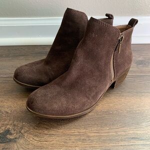 Double zippers and a chunky block heel give this pair a touch of edge.