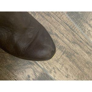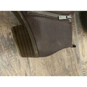 Lucky Brand Basel Bootie Size 8M Dark Brown Double Zippers Chunky Heal Leather