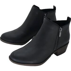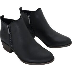 Lucky Brand Basel Booties Black Embossed Leather Ankle Boots Women's US 6.5M