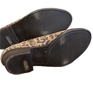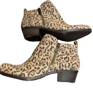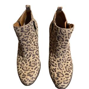 Lucky Brand Basel Leopard Printed Leather Side Zip Block Heel Ankle Booties Sz 7