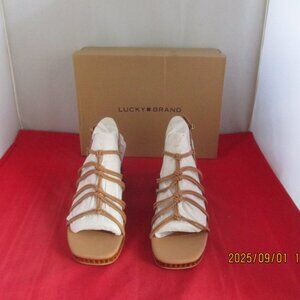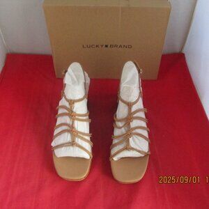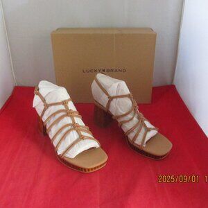 Lucky Brand Bassie Faux Leather Caged Heels $99 - US Size 9 - Tan - 1316