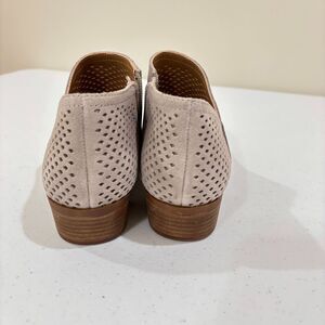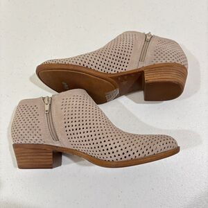 Features: Lucky Brand Baylah Booties. Taupe/Beige. Genuine Leather Upper. Stamped Cutouts. Zipper closure.