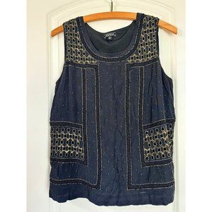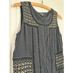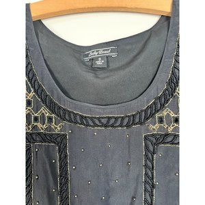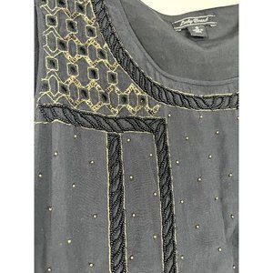 Lucky Brand Beaded Crepe Tank Black Small Retails $129 Embellished Womens Top