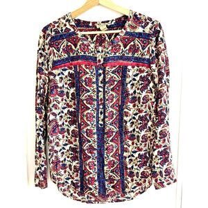 Lucky Brand Beautiful Boho Style Long Sleeve Floral Peasant Top Sz Medium EUC