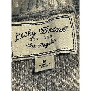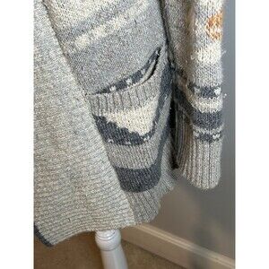 Lucky Brand Beige Grey Long Open Front Cardigan Sweater Aztec Design Women's S