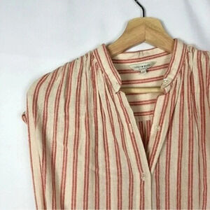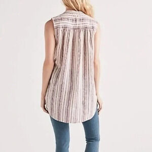 Lucky Brand Beige & Red Stripe Button Down Tie Waist Tunic Tank Top