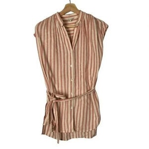 Lucky Brand Beige & Red Stripe Button Down Tie Waist Tunic Tank Top XS