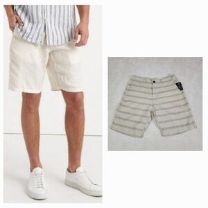 Lucky Brand Beige Stripe Linen Blend 9" Flat Front Shorts Sz 30 NEW