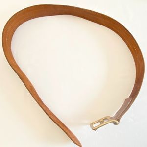 In good preowned condition, signs of wear ie, slight pinch in back, see photo 4, some parts are missing the stitching, Still, a sturdy, heavy leather, good looking belt.