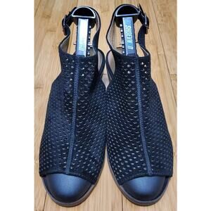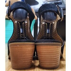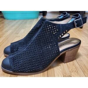 Lucky Brand Bertel Slingback Sandals Women 8.5 M Black Brown Block Heel Peep Toe.