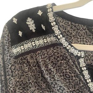 Lucky Brand Black Embroidered Boho Pullover Long Sleeve Top Women’s Plus Size 1X