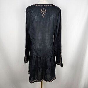 Lucky Brand Black Embroidered Tunic Dress Medium Cotton Whimsigoth Boho Cottage