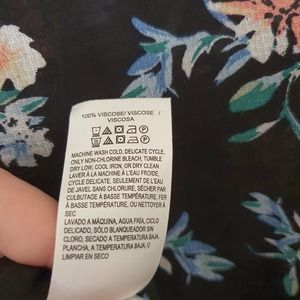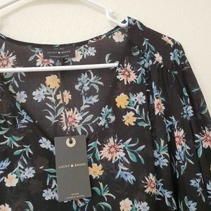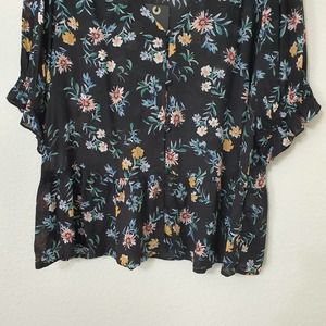 Lucky Brand Black Floral V-Neck Button Front Ruffled Peplum Top Size Medium