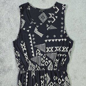 Lucky Brand Black Geometric Low V-Neck Sleeveless Maxi Dress Boho Tribal NO BELT