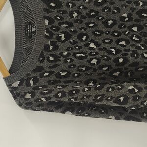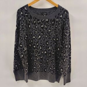 Lucky Brand Black & Gray Leopard Print Pullover Crew Neck Sweater Size 2X