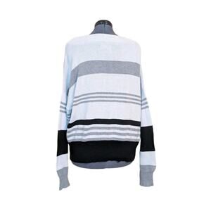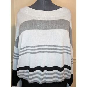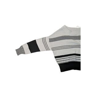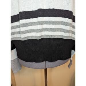 Lucky Brand Black Gray Striped Pullover Knit Long Sleeve Sweater. Dolman batwing sleeve. Ribbing on waist. Crew neck. Cozy.
