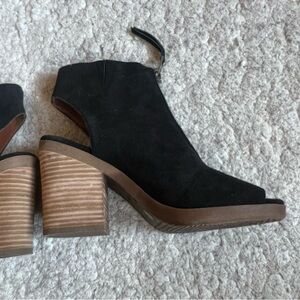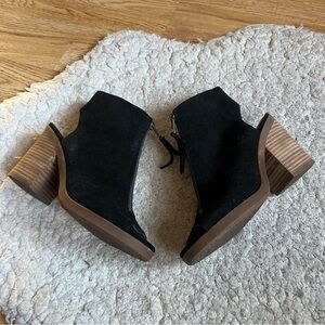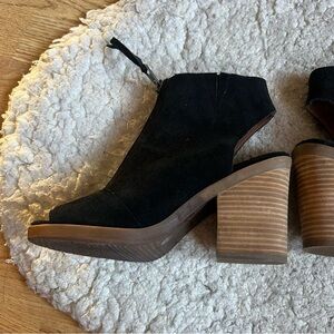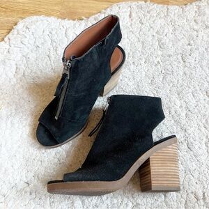 Lucky Brand: Black Heeled Peep-Toe Ankle Boots with Chunky Heel