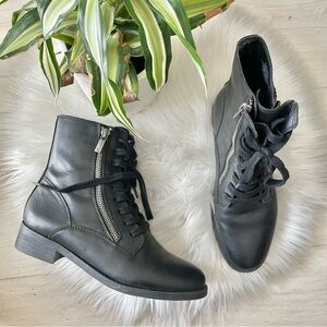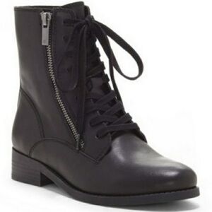 The Lucky Brand Hildran Combat Boot is a city boot in charge with a casual lace up style, dual side zippers, and a stacked low heel. Lace up Side zipper Low heel.