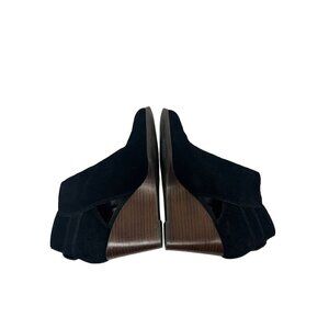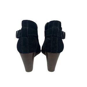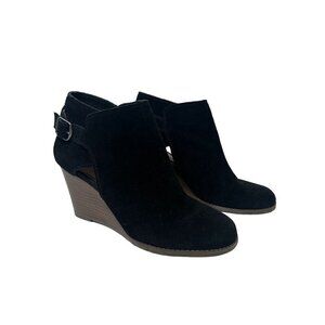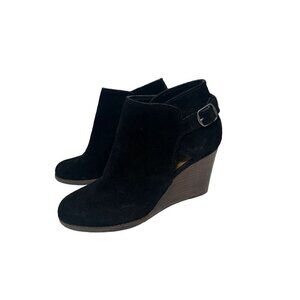 Lucky Brand Black Leather Wedge Ankle Boots With Buckle Strap Size 9
