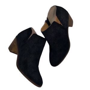 Lucky Brand Black Leather Bootie, Side Zipper Closure, Block Heels, Cushioned footbed, Gently worn reflects minor wear please review photos.Approx heel Height 2.5"