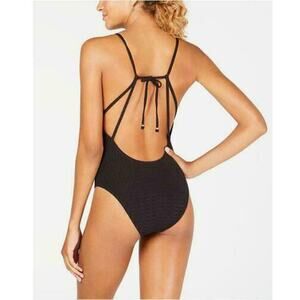 Lucky Brand Black Plunging Strappy Back One Piece Swimsuit XS Shoreline Chic New