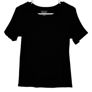 Lucky Brand Black Ribbed Scoop Neck Short Sleeve T-Shirt Modal Cotton Blend Sz M