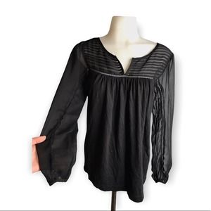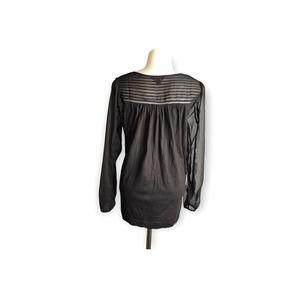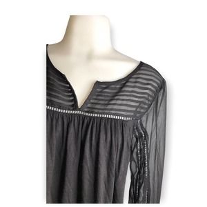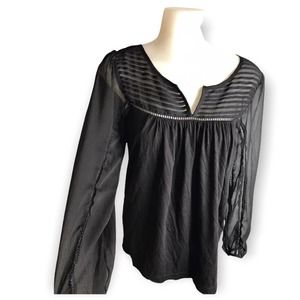 Lucky Brand | Black Sheer Blouse Eyelet Cutout Detailing on chest and sleeves