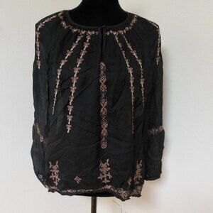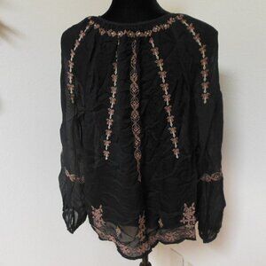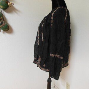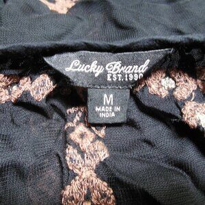Lucky Brand Black Sheer Blouse with Embroidery