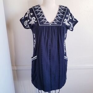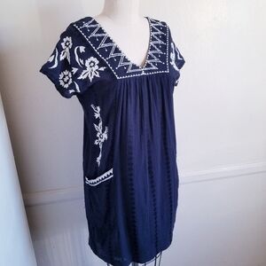 Boho short sleeve shift dress from Lucky Brand with Floral White Embroidery.
