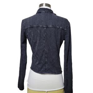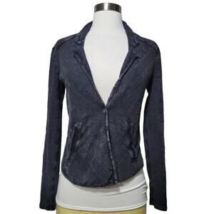 Lucky Brand Black Stretchy Distressed Aztec Blazer Jacket Embroidered Size XS