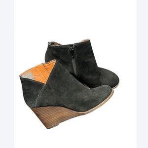 Lucky Brand Black Suede Wedge Ankle Boots – Size 7.5