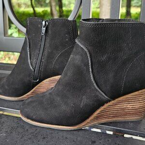 Lucky Brand Black Suede Wedge Booties SZ 6.5