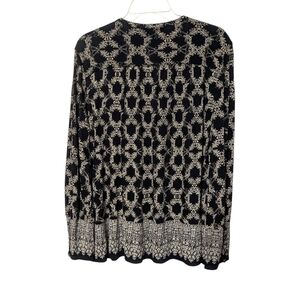 Lucky Brand Black Tan Geometric Patterned Henley Button Popover Blouse Size XL