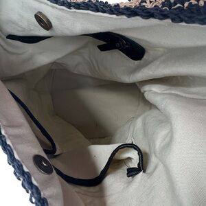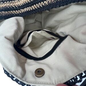 Lucky Brand Black Tan Geometric Woven Paper Bucket Bag Purse