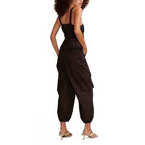 Lucky Brand Black Utility Cargo Jumpsuit Small Elastic Waist Zip Front One-Piece