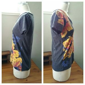 Lucky Brand Black V-neck Tee with Flower Print