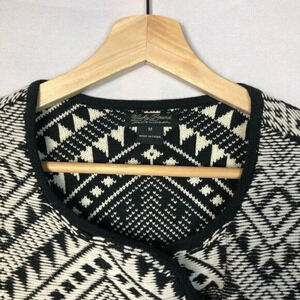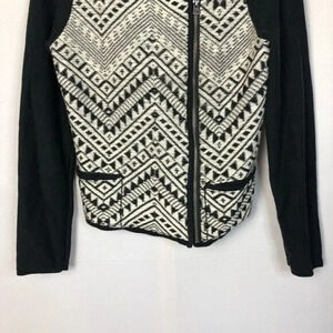 Lucky Brand Black & White Aztec Print Side Zip Moto Sweater Jacket M
