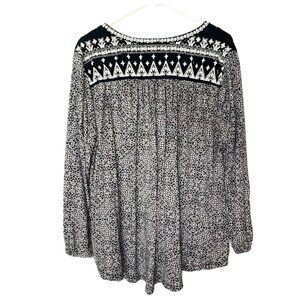 Lucky Brand Black & White Embroidered Long Sleeve Blouse Size 2X