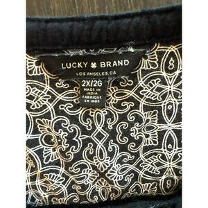 Tags-Lucky Brand blouse, embroidered top, plus size clothing, 2X women's top, cotton modal blend, boho chic blouse, Lucky Brand 2X, relaxed fit top, lightweight blouse, geometric print shirt, black and white blouse, embroidered long sleeve, black white embroidery