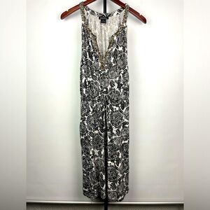 Lucky Brand Black White Floral Boho Bronze Embellished V-Neck Tank Dress